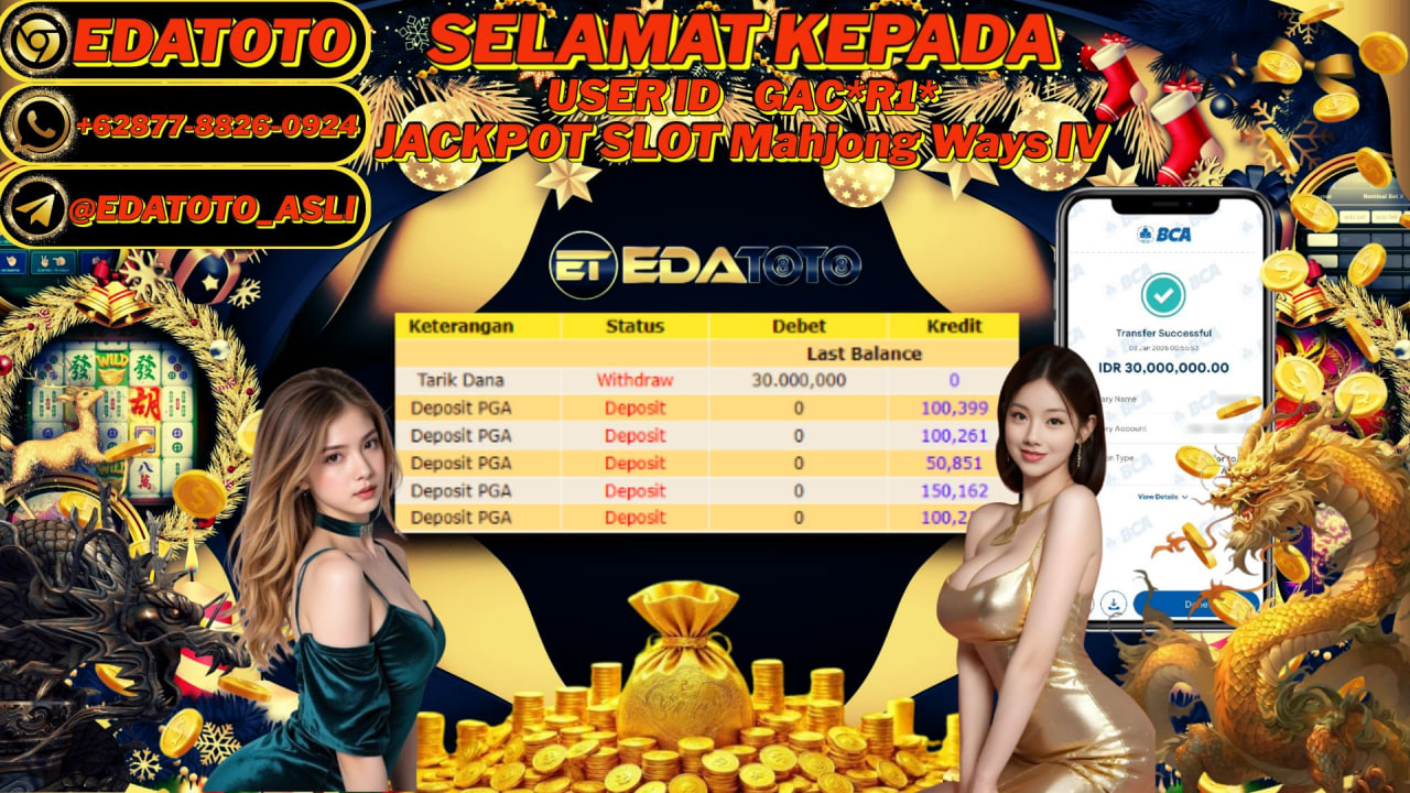 Selamat Kepada Pemilik user ID : GACO*R1* Hari/Tanggal :kamis/ 2, Januari 2026 Jackpot : Rp. 30,000,000 JT Withdraw : 30,000,000 . . .